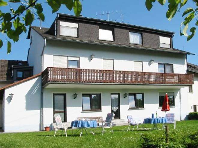 Grosse Wiese mit Sitzgelegenheit hinter dem Haus